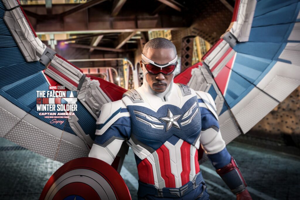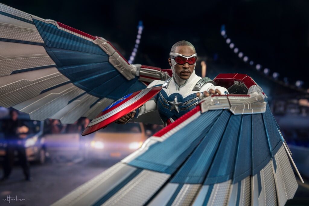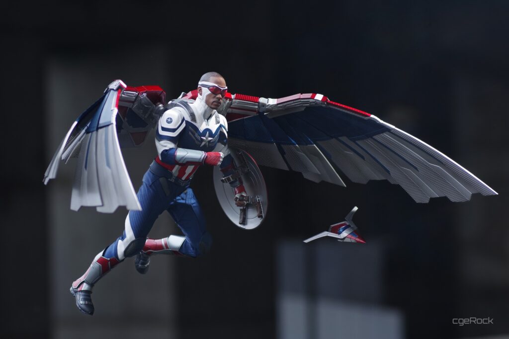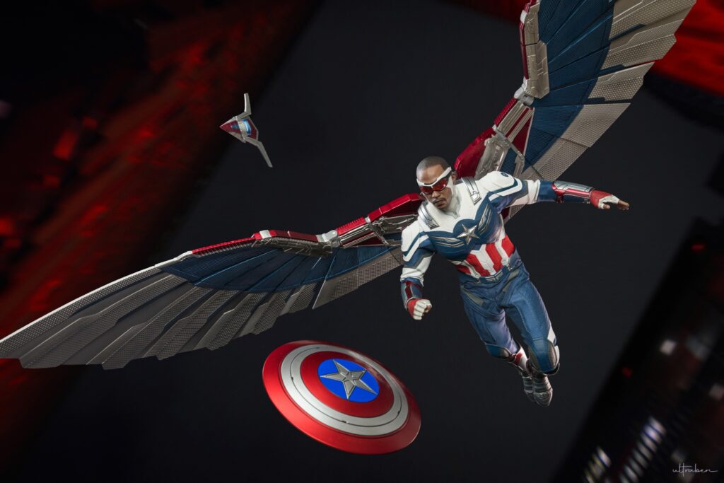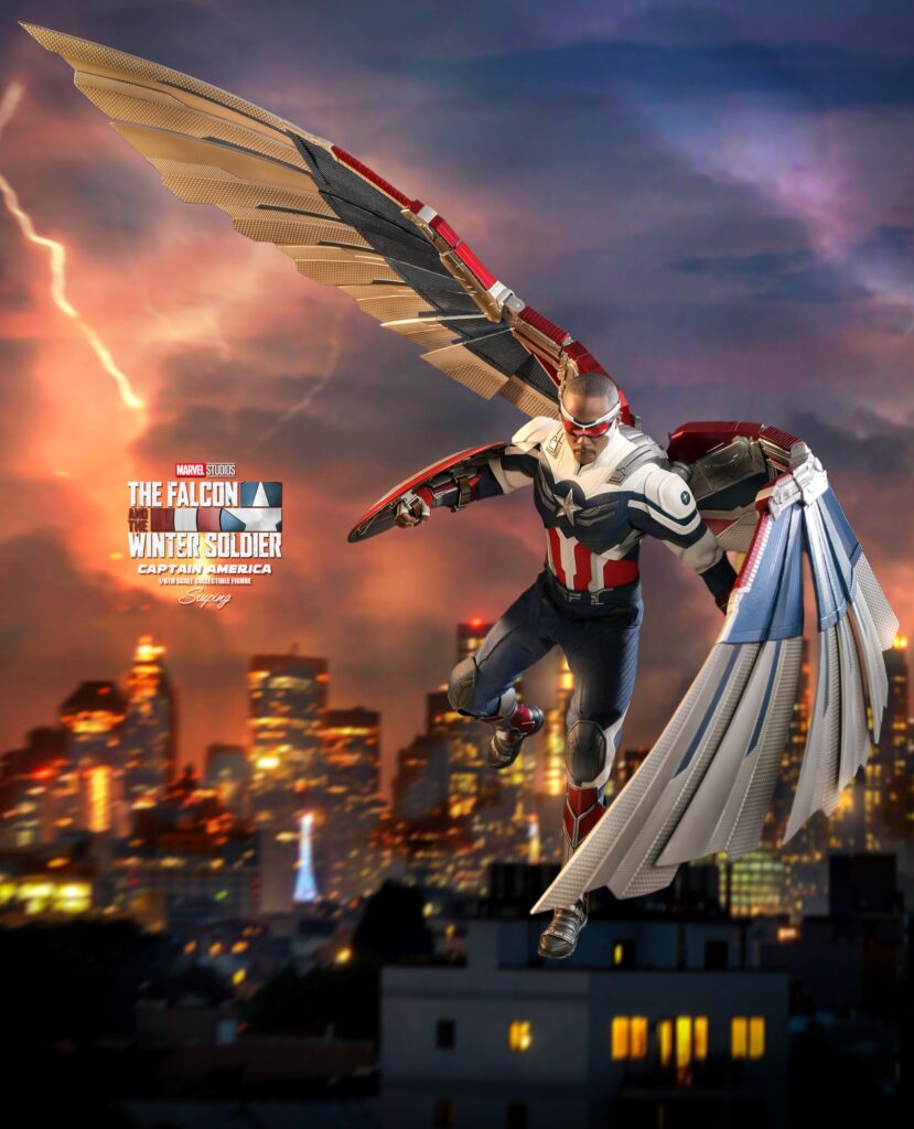 Crafted based on the appearance of Anthony Mackie as the new Captain America in The Falcon and the Winter Soldier series finale, the figure features a newly developed head with face gaiter and goggles; a newly designed tactic outfit with a Star emblem; Captain America’s iconic shield; a flight back pack, a Redwing drone, and detailed recreation of the massive wings measures approximately 80cm wide, designed with extended articulation for incredible action scenes.