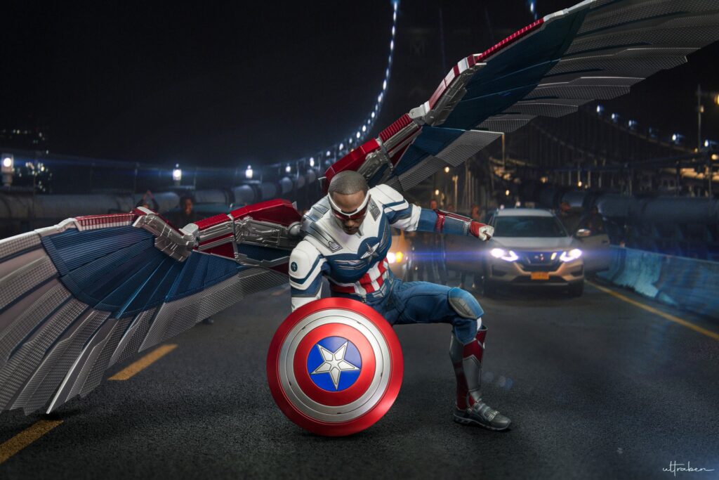 Teaming up with Bucky Barnes against the Flag Smashers rebel group, Sam Wilson a.k.a The Falcon suits up again but in a new outfit with his signature wings, reclaims the symbolic shield once wielded by Steve Rogers and the complicated legacy that comes with being the new Captain America in the conclusion of Marvel Studios’ The Falcon and the Winter Soldier series.