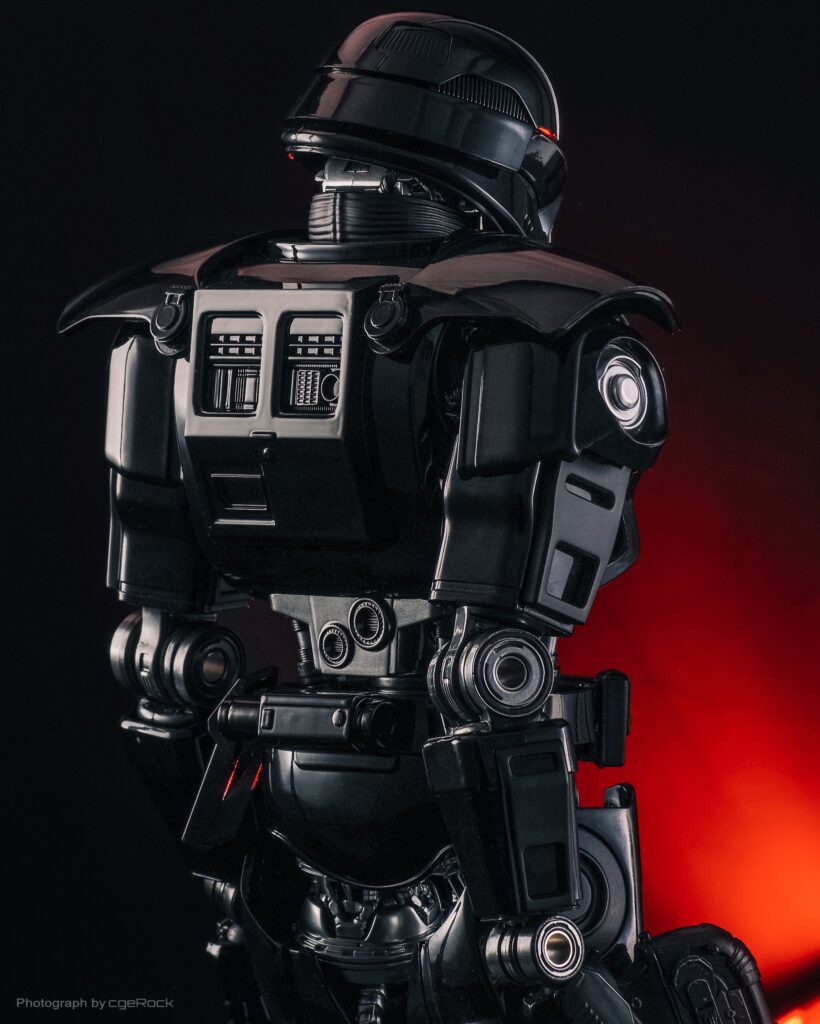 The third-generation design Dark Troopers are no longer suits. The human inside was the final weakness to be solved. They are now droids. These troopers proved to be very intimidating and dangerous as the Mandalorian struggled to defeat even one of these fearsome foes during his rescue mission of Grogu aboard from Moff Gideon’s ship. Today Hot Toys is sharing blogger photos of 1/6th scale Dark Trooper collectible figure from Star Wars: The Mandalorian series.