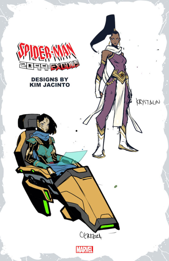 New York, NY— June 27, 2022 — Marvel Comics is currently celebrating the 30-year anniversary of its 2099 imprint with SPIDER-MAN 2099: EXODUS, a thrilling limited series that revolutionizes the far-future setting for a new age! Written by Steve Orlando, the saga kicks off when a Celestial falls to Earth, providing a glimmer of hope to the grim dystopian world that fan-favorite hero Spider-Man 2099, Miguel O’Hara, must protect at all costs. Following Spider-Man’s mission, each issue of the series switches focus to a different team or character resulting in a thrilling journey that catches readers up to speed with the core elements of the 2099 mythos and introduces new heroes along the way such as 2099 versions of Black Widow, Loki, and Winter Soldier. And in August’s SPIDER-MAN 2099: EXODUS #5, Orlando will team up with acclaimed artist Kim Jacinto to debut the new X-MEN 2099! Joining classic X-MEN 2099 characters such as Cerebra, Krystalin, and Bloodhawk will be new X-Men, some of who have adopted the names of their legendary predecessors. Check out action-packed new interior artwork and Jacinto’s design sheets that feature these new 2099 X-Men including Cyclops, Northstar, Phoenix, and more!