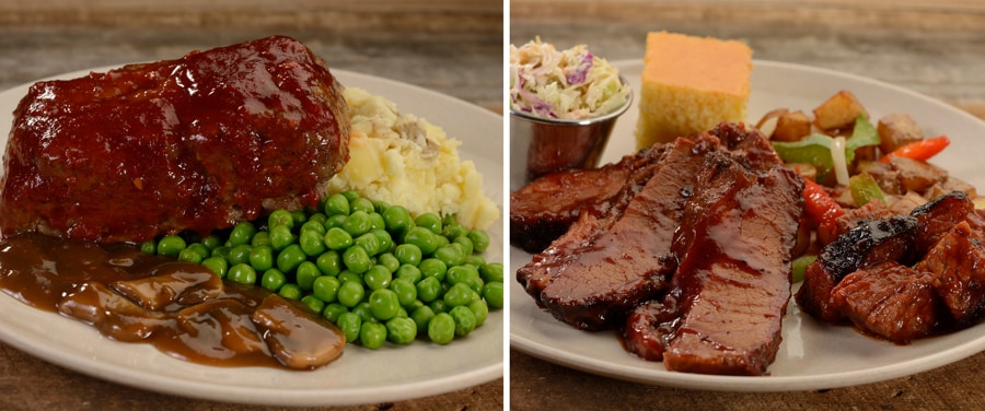 If you’re looking for a heartier dish, I’ve got two more for you. The Country-style Baked Meatloaf features buttery green peas, chunky mashed potatoes, and gravy for a classic meal. The Barbecued Brisket and Burnt Ends with potato hash, fiery coleslaw, and cornbread features some comfort BBQ fare packed with flavor.